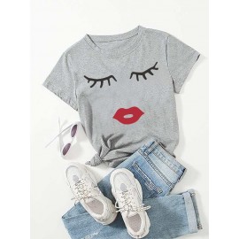 Women's T Shirt Letter Printed Short Sleeve O Neck Top