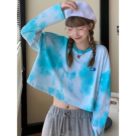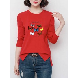 Women's Tee Butterfly Pattern Simple Round Neck Long Sleeve Top