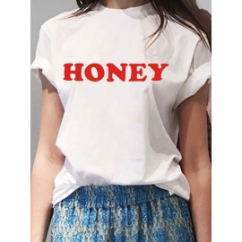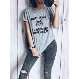 Women's T-Shirt Words Print O Neck Short Sleeve Loose Top